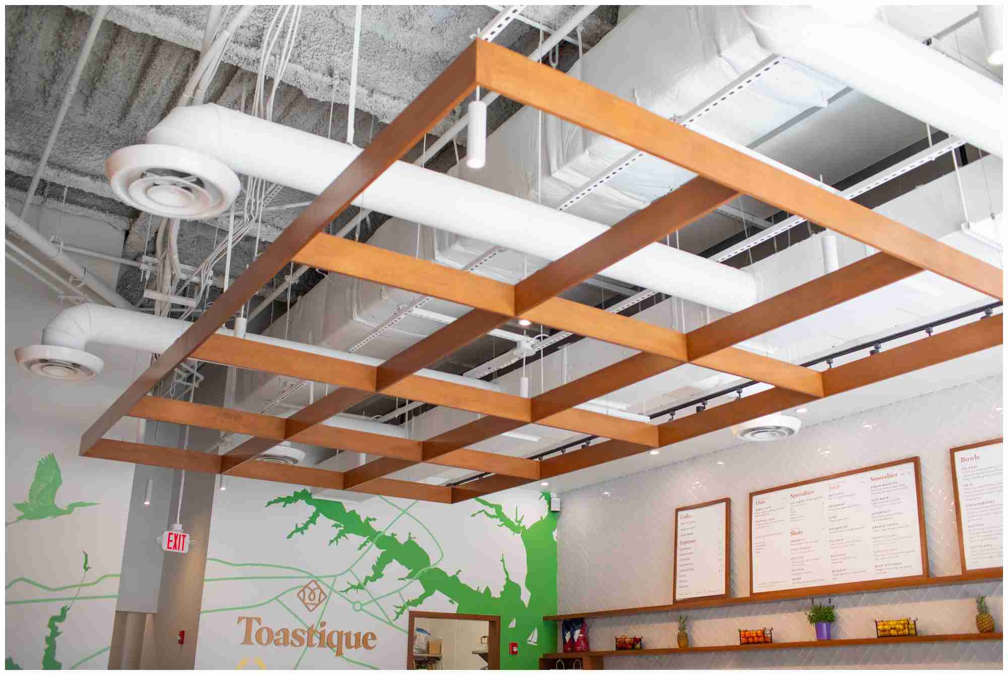 Weisman Electric Company is proud to be a part of the team, that completed the commercial tenant fit out of the new Toastique restaurant in the Annapolis Towne Center in Annapolis, MD. Toastique is a boutique gourmet toast and juice bar offering a fresh, chic, rustic experience featuring seasonal and responsibly sourced products all day long. The franchise recently opened this new third Maryland location in May of 2024. Project highlights include a mix of modern lighting fixtures with an industrial exposed ceiling; a long-spanning food prep area with open site lines into the dining room, all accentuated by a variety of interior lighting types; power supply for an array of sophisticated commercial kitchen equipment and a large walk-in cooler storage space.