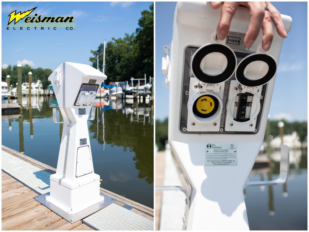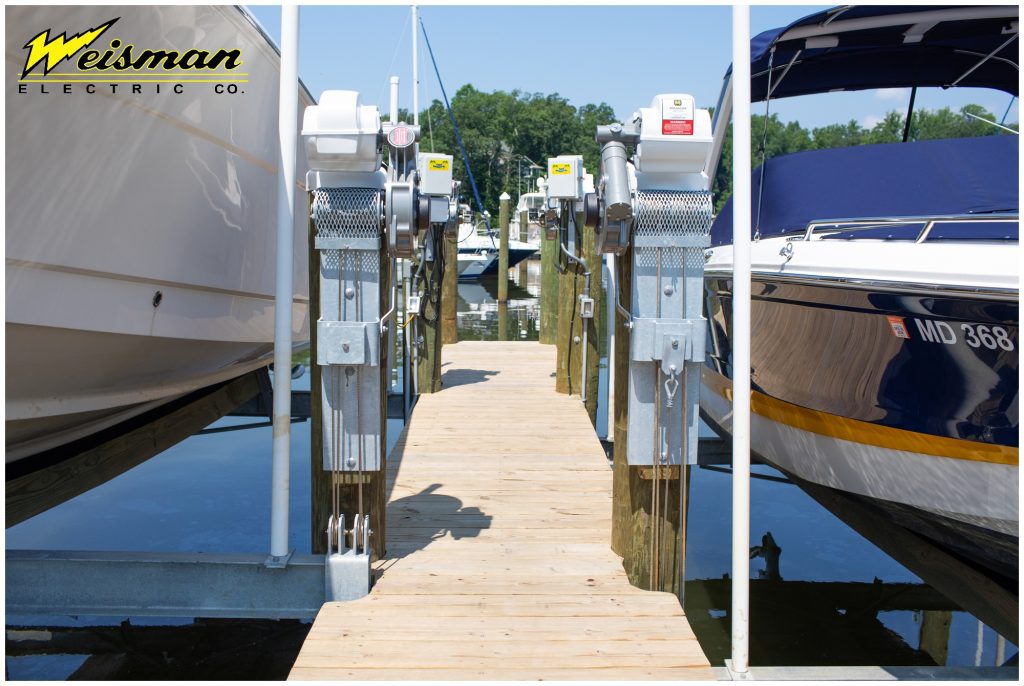Weisman Electric Company recently completed part one of an extensive electrical project at Waterfront Marine in Edgewater, MD. This multi-part project includes power upgrades for the marina’s docks and piers and the future development of a new warehouse space. Some recent project highlights included furnishing and installing new power pedestals for shore power capability and use on a new floating dock, installing conduit and wiring for multiple boat lifts, installing and wiring a GFCI detection system on a new dock, installing new LED lighting in an existing warehouse, and more.
